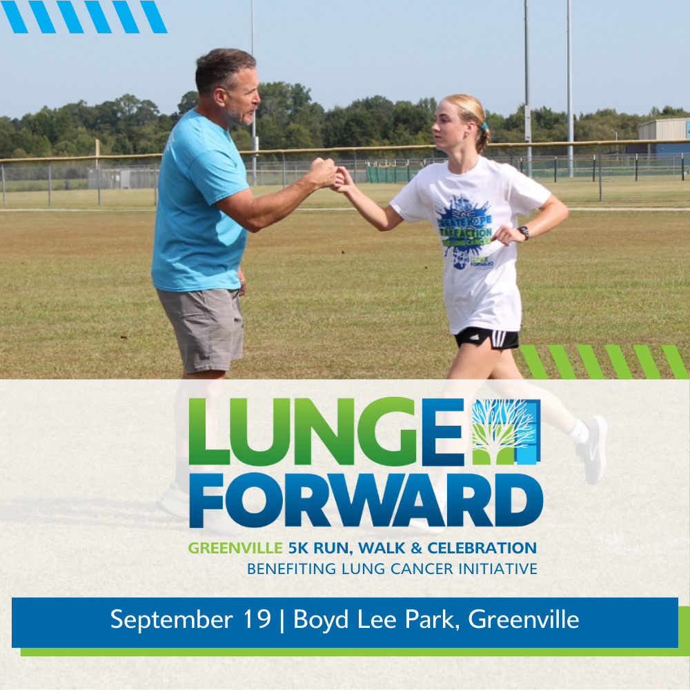 Join us for the Greenville LUNGe Forward 5K Run, Walk & Celebration—a meaningful community event bringing together survivors, families, friends, and supporters for a powerful day of action, hope, and celebration for those impacted by lung cancer.